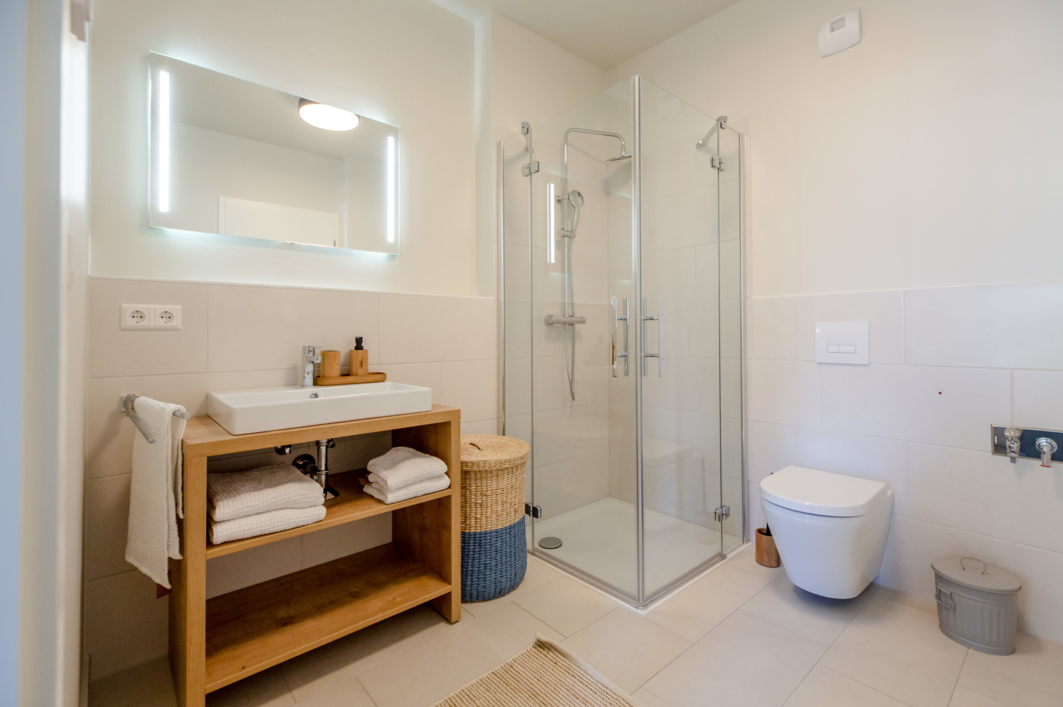 The apartments size M have 2 or 3 rooms and range from 60 m² to 122 m². The apartments have a balcony or a loggia. The quality of the architecture continues to shine inside, through floor plans that support the modern and individual lifestyle of today. Generous window facades, open-plan kitchens, and the bright and friendly furnishings of the bathrooms allow you to breathe and offer a high quality of life. We should not forget to mention that the apartments sizing M & L are equipped with fitted kitchens, high-quality oak wood parquet flooring, and some have utility rooms.